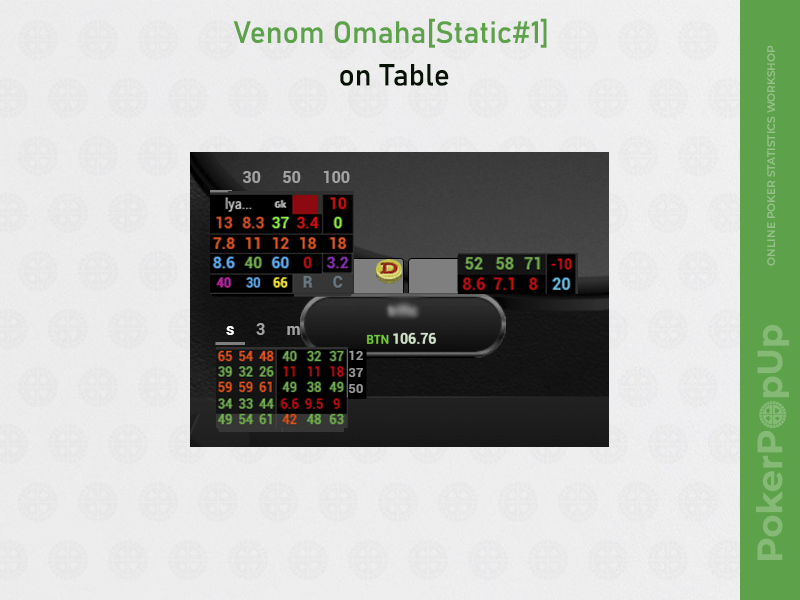 Venom 5 Card PLO – это набор статистики и попапов для Hand2Note, разработанный специально для пятикарточной омахи.
