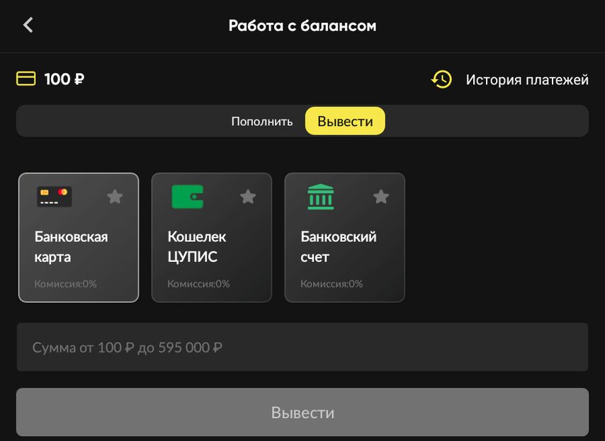 Минимальная сумма вывода в Бинго Бум зависит от выбранного способа кэшаута. При выплате выигрыша в кошелек ЦУПИС или по банковским реквизитам она составляет 100 рублей, при выплатах на карту — 1,000 рублей. Если на игровом счете менее 1,000 рублей, можно вывести на карту всю сумму.