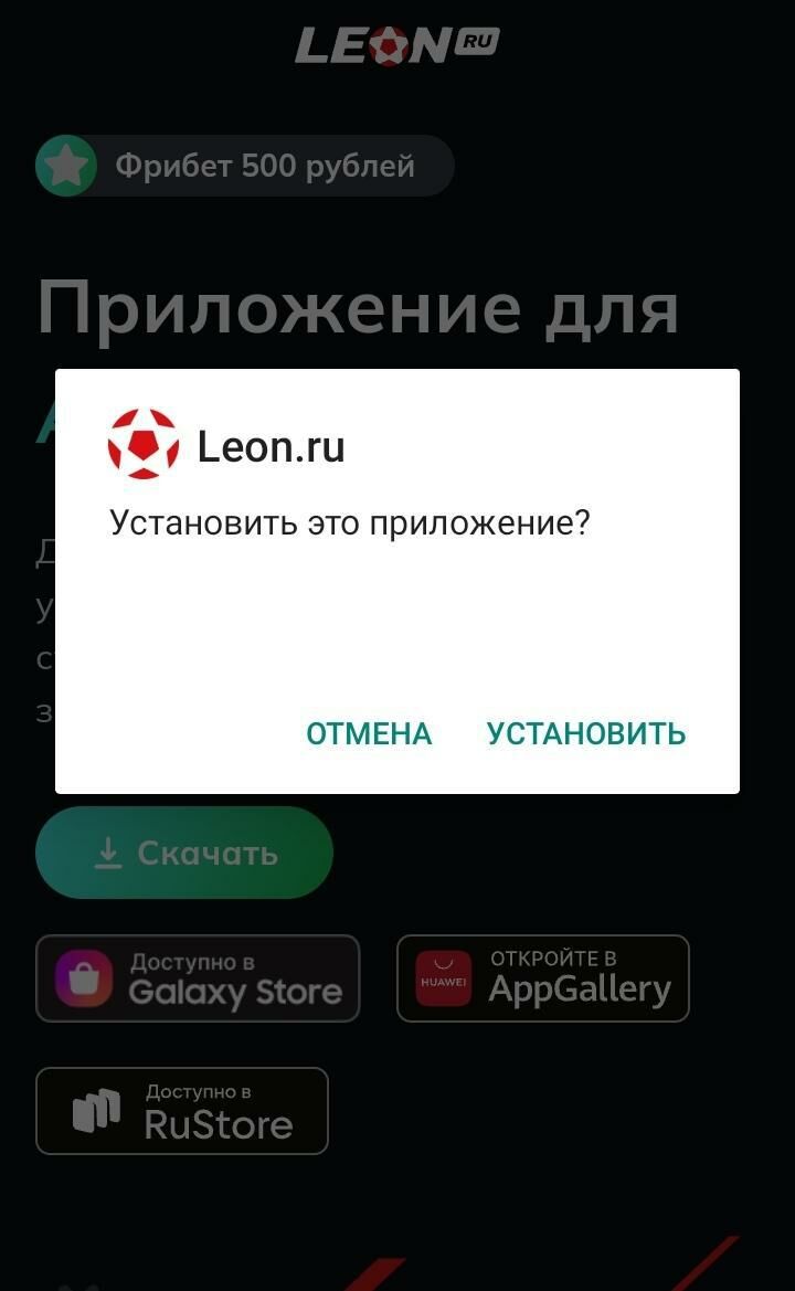 Чтобы скачать и установить приложение БК «Леон» на Андроид, следуйте инструкции: