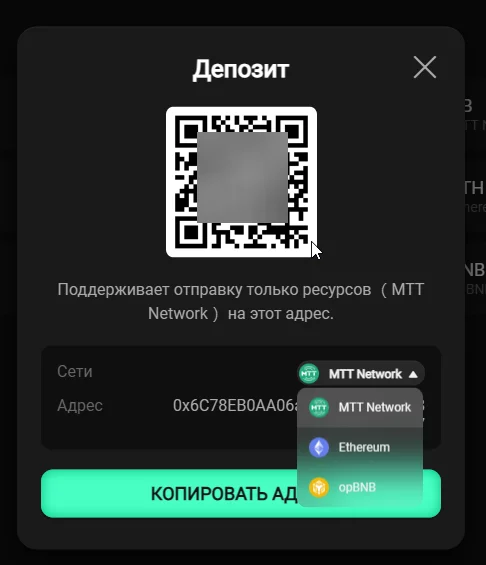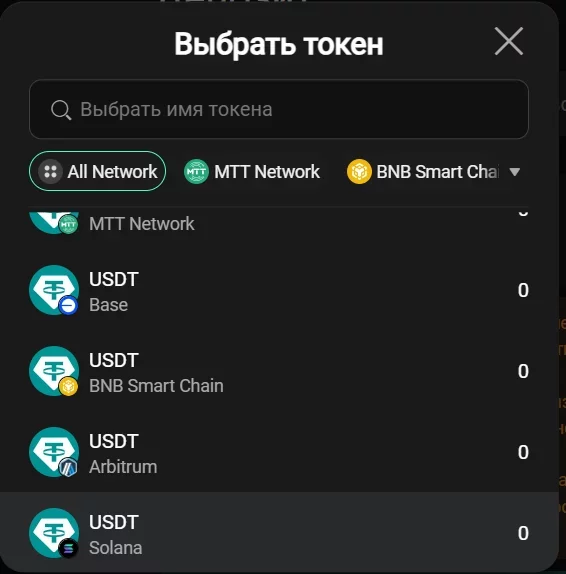 Пополнить счет в MTT Sports можно переводом криптовалюты разными монетами, включая USDT, BNB, DOGE, MBTC, PEPE, SHIB, SOL. Эти же варианты доступны для вывода средств.