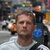 Эрик Сайдел одиноко сидит вдали от шума на ступеньках, ведущих на постамент для прессы (вежливо подвинулся, когда я его обходил).