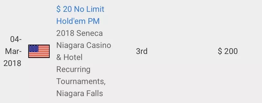 — Вообще этого не помню! Ха-ха, может быть, это вообще не я был? На сайте написано, что турнир проходил в Ниагара Фоллс, но я там вообще не был ни разу. Впрочем, в те веселые годы было было слишком много вечеринок с алкоголем и препаратами, вроде Ксанакса. После них я вполне мог залететь за стол и попасть в деньги. Жаль, что вспомнить не могу.