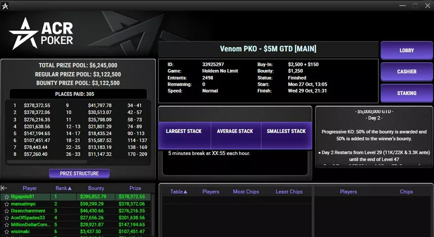 Павел «Rigapols81» Спирин выиграл последний турнир Venom с бай-ином $2,650 ($675,224).
