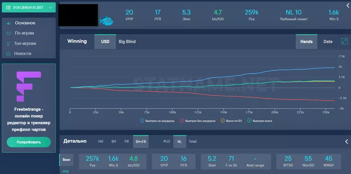 Помню, что мое мнение о том, как и где надо играть в покер, сильно зависело от того, что я читал на форуме. И еще я принципиально не хотел брать тренировки, хотел «пройти покер» сам. Поэтому я, например, думал, что играть где-то кроме Старзов – странно. Считал себя агрессивным игроком, хотя реальный WWSF у меня был 45. Если мне казалось, что я нашёл какой-то эксплойт, то я старался его применить с любой рукой. Например, мог начать всегда 3-бетить спаренные флопы, просто потому, что внушил себе, что люди слишком часто их чек-рейзят.