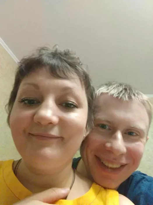Мы ещё вместе с женой. У неё ещё не отросли волосы после химии, а мои, наоборот, на месте, как и передние зубы.