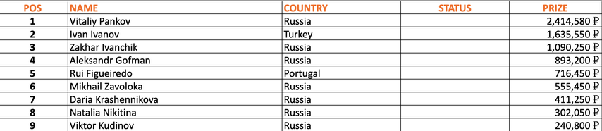 Виталий Панков начинал второй день чиплидером и в этом статусе провел всю заключительную стадию. В 3-максе у него было 80% всех фишек, и он уверенно довел дело до победы.