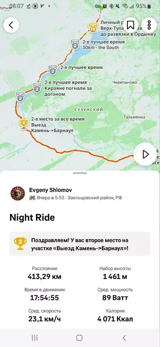 🏃♂️ Раннер-ап: ZoOL, проехавший на велосипеде 413 км за один день.