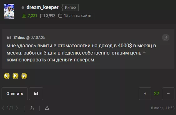 Сентябрь МТТшник S1dius посвятил просветительской деятельности: он запилил несколько масштабных постов о стоматологии. В теме хиро разбирается досконально: летом уволился из клиники (где получал $4,000 в месяц!), чтобы стать покер-про. Реакция комьюнити была ожидаемой: