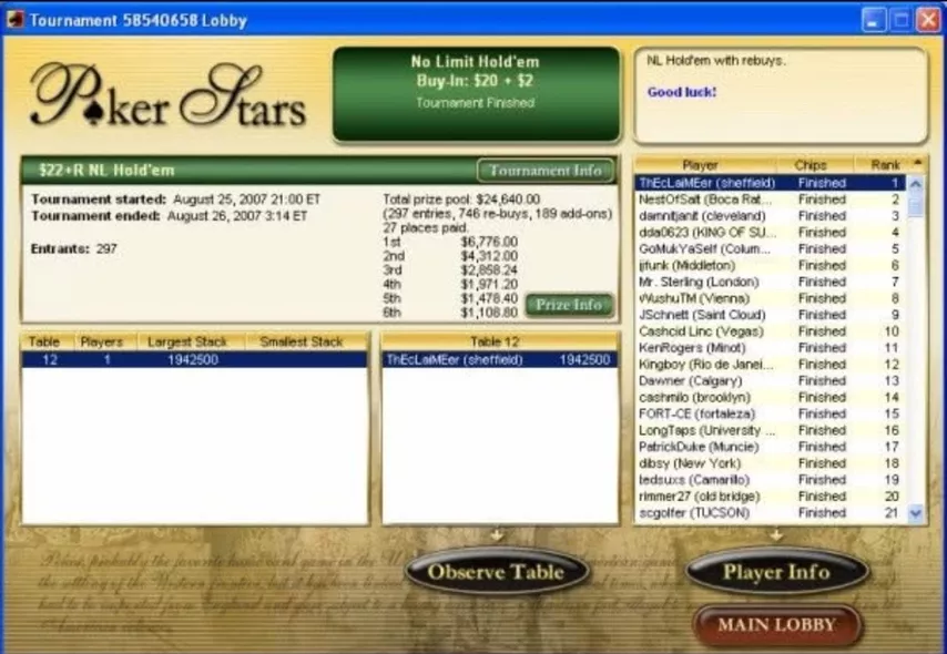 А ещё в славные дни покерного бума вы могли выиграть не менее $10,000 в любом из турниров с ребаями за $3, $5 или $10 на PokerStars или во фризауте за $26 на Full Tilt.