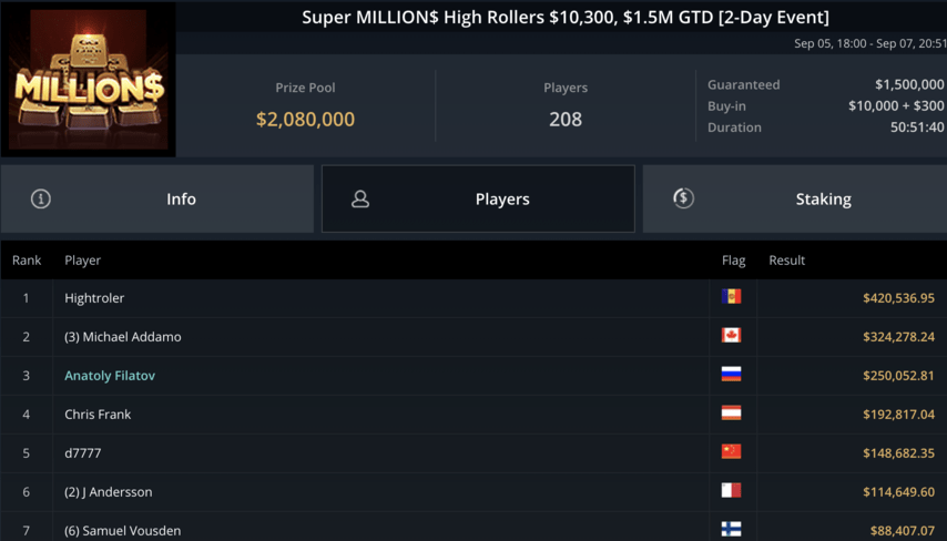 В понедельник завершился многодневный дипстек с бай-ином 260 у.е.