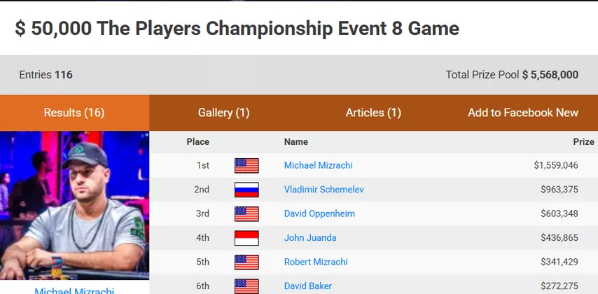 – Старшему сыну недавно исполнился 21, в августе он сыграл свой первый турнир за $10k на Кипре. Это был первый турнир в истории, в котором участвовали сразу 5 Мизрахи. В деньги попали только мы с Эриком. Средняя дочь, к счастью, не проявляет ни малейшего интереса к гэмблингу. Младший родился в 2008 году, ему покер тоже интересен, особенно после моих летних успехов.