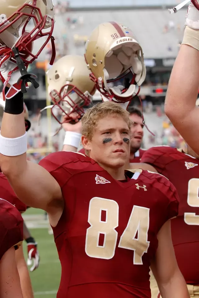 – Для тех, кто не знает, Алекс играл тайт-энда за Boston College три или четыре года.