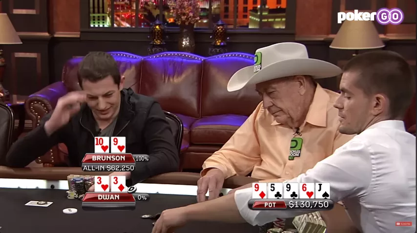 – Следующая раздача – твои тройки против T9s Дойла.