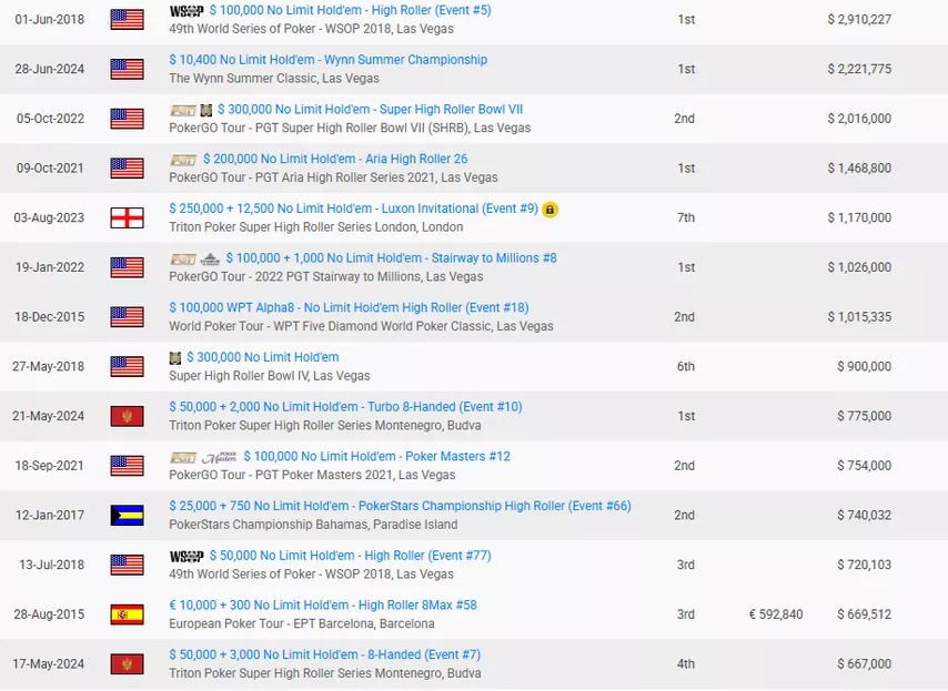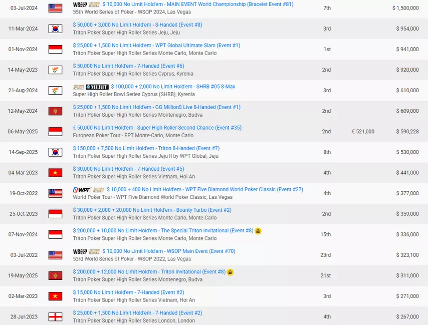 Лучшие результаты Брайана Кима за карьеру в МТТ