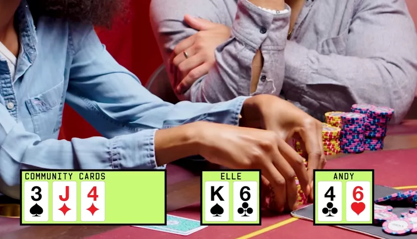 Вскоре Элли попыталась заблефовать меня крупными ставками, но, следуя совету Джозефа, я заплатил по совпадению четвёрки и забрал у Элли все её фишки.