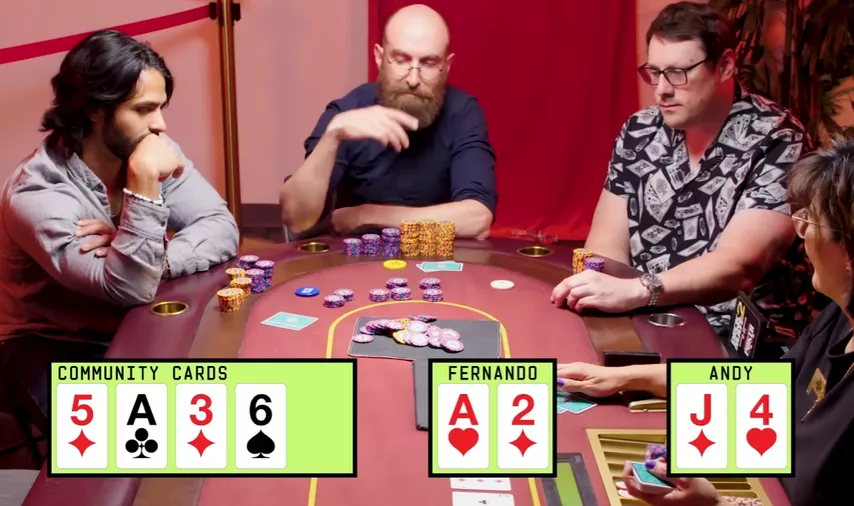 Прошло больше часа из запланированных трёх часов, а я всё фолдил и фолдил. На моей стороне был хакер, но не удача. Фернандо на этом отрезке играл отлично и выиграл существенную часть фишек. А потом Джозеф забыл, что должен подавать сигналы левой рукой, а его правую руку я не видел. Пришлось напомнить ему об этом довольно прозрачным образом: «Джозеф, вы, случайно, не левша?»