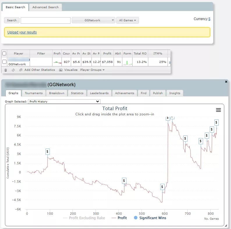 Крупнейшая (и по сути единственная) онлайн-база результатов турниров по онлайн-покеру. Собирает информацию из сетей Chico, iPoker, Winning, румов Winamax, PokerStars, partypoker, 888poker и многих других. Показывает профили игроков с подробной статистикой: