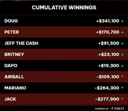 TaxHere выиграл $140k (по EV) в пятый день челленджа, а DavyJones922 – $126,590 в четвертый. Наши игроки пока выдающихся результатов не показывают. В плюсе идет только Daniiiiil, он выиграл $4,228.48 за 728 раздач. Также участвуют Enlight, MunEZ, Iimitlesss и GREAGGY – пока все они в минусе.