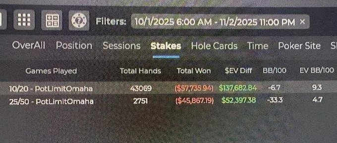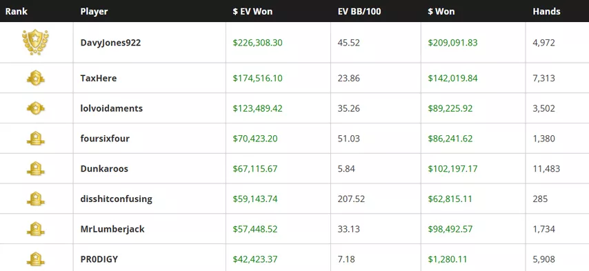 В данный момент замыкает рейтинг LLinusLLove, по EV он проиграл $185,919.71, а фактически – $240,343.97.
