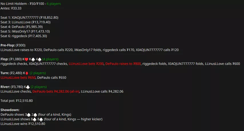 – Линус правильно заколлировал мой олл-ин с парой восьмерок на доске KKKK4, – написал Райан после раздачи. – Я ошибся на всех улицах… Он меня поимел, но мы ему еще отомстим.