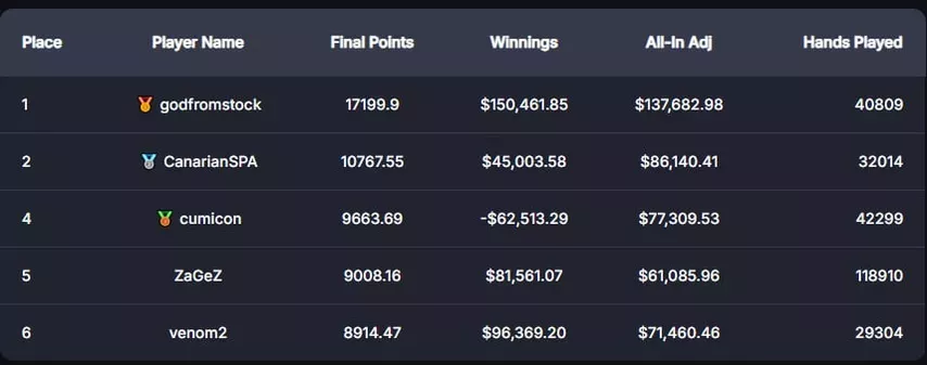 Официальный партнер чемпионата – PokerStrategy, там же можно найти ежедневно обновляемый лидерборд.