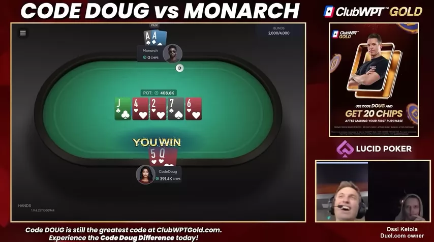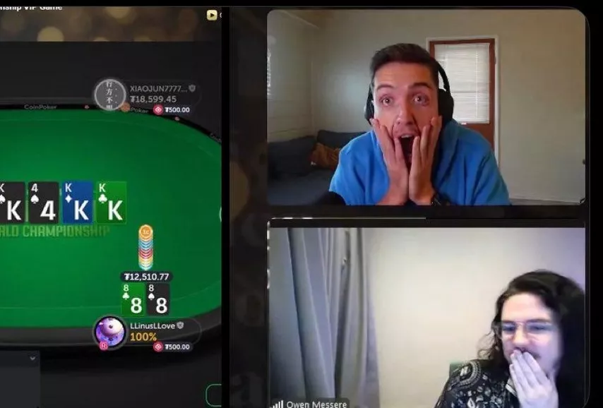 Каждое воскресенье в рамках челленджа проходит VIP-игра по приглашением. Линуса туда пустили, как самого минусового игрока первой недели. В одной из раздач он заколлировал олл-ин на ривере с 8-хай.