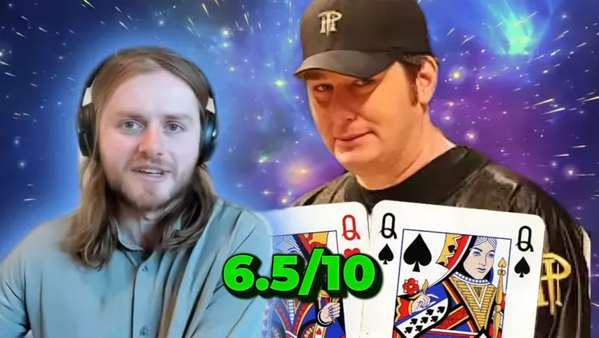 За эту раздачу Фил получает от меня 3.5/10. Я бы поставил ещё меньше, но ведь на заре его карьеры это могло сработать! Идея не совсем дебильная, но вот соперник выбран неудачно. Ставить такой овербет нужно против человека, у которого нет наигрыша миллионов раздач в онлайне. Возможно, Фил и сам не до конца понимает, насколько палевно выглядит его линия в глазах любого теоретически грамотного игрока.