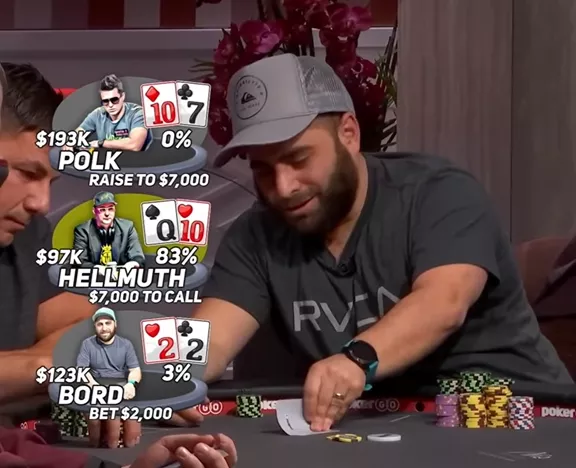 Борд выкидывает. Сразу видно, что Даг – очень хороший игрок! Это можно судить по выражению его лица и по тому, что он не делает мгновенный колл.