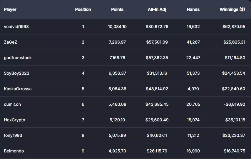 Очки начисляются на основе EVbb на лимитах от $2/$5 до $10/$20.