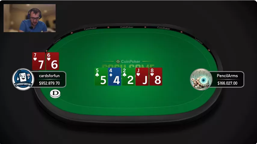 Матч против PencilArms начался для cardsforfun намного лучше. В какой-то момент около $1 млн за столом было уже у него.