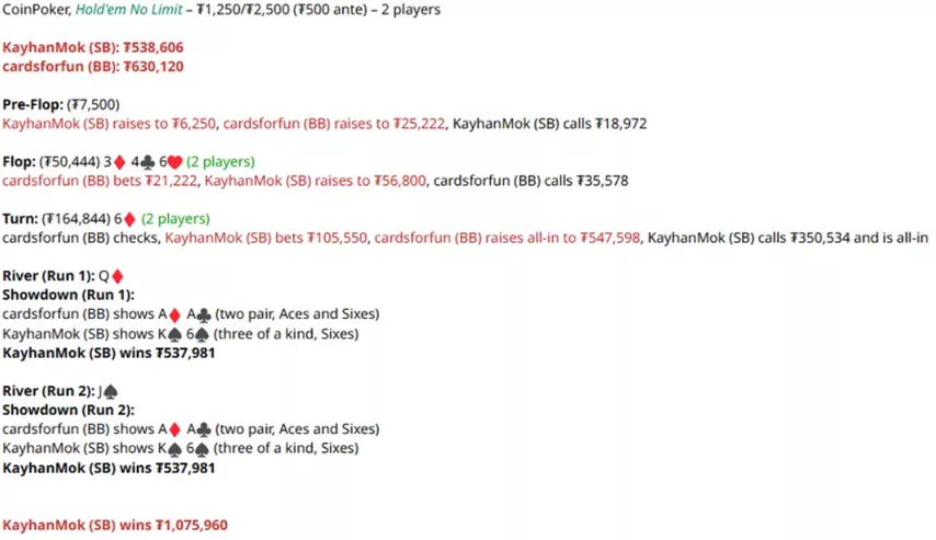 Одной из самых обсуждаемых стала раздача, которую Кайхан выиграл с валетами.