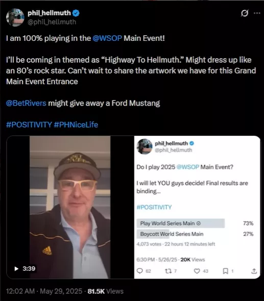 Фил любит заранее объявлять, где он будет или не будет играть. Все помнят его прошлогодний твит, когда он пообещал, что не будет играть главный турнир WSOP.
