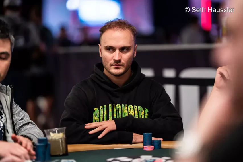– Тут я с тобой не совсем согласен. На самом деле в таких крупных мейнах люди часто просто сходят с ума. Можем вернуться к моей апрельской финалке – там чувак вообще без эквити пошел исполнять – первый стек со вторым зарубился и в итоге вылетел восьмым. Ну где еще такое увидишь? В общем, люди иногда садятся с настроем «а давай помахаемся». В этот раз все более спокойно получилось.
