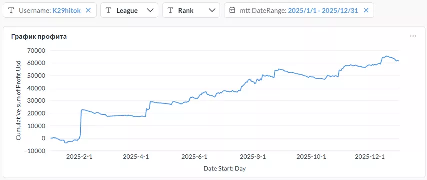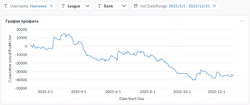 Топ-виннер и топ-гриндер года – один и тот же человек – отыграл 7,632 турнира с профитом $68,000. Ровный график, без кобр и качелей – тот самый случай, когда дисциплина победила.