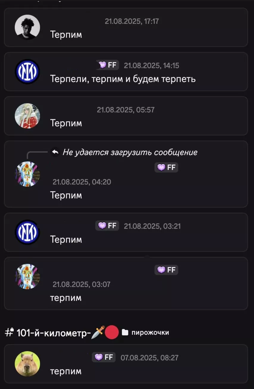Самый популярный мем 2025 года – это, однозначно, простое слово «Терпим». Кто-то из ребят начал использовать его в блоге и оно стало девизом игроков фонда. «Терпим» помогало справляться с неудачами, поддерживало боевой дух в ожидании заносов, а иногда просто разряжало атмосферу. В конце своего жизненного пути «терпим» использовалось в самых абсурдных ситуациях, никак не относящихся к терпению или ожиданию.