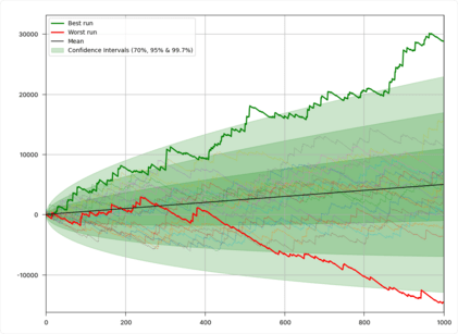 В больших полях взлёты выше, но падения глубже и чаще. В маленьких полях мы чаще остаёмся в плюсе. В больших полях мы в 40% случаев останемся в минусе после 1,000 турниров, а необходимый для игры банкролл составляет $23,069. В маленьких полях шанс отыграть 1,000 турниров в минус равен 18%, и банкролл нужен намного более скромный – всего $8,742.