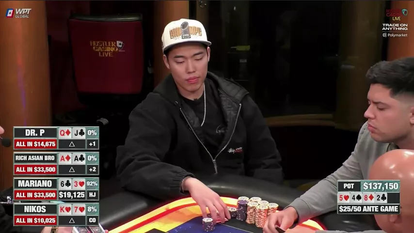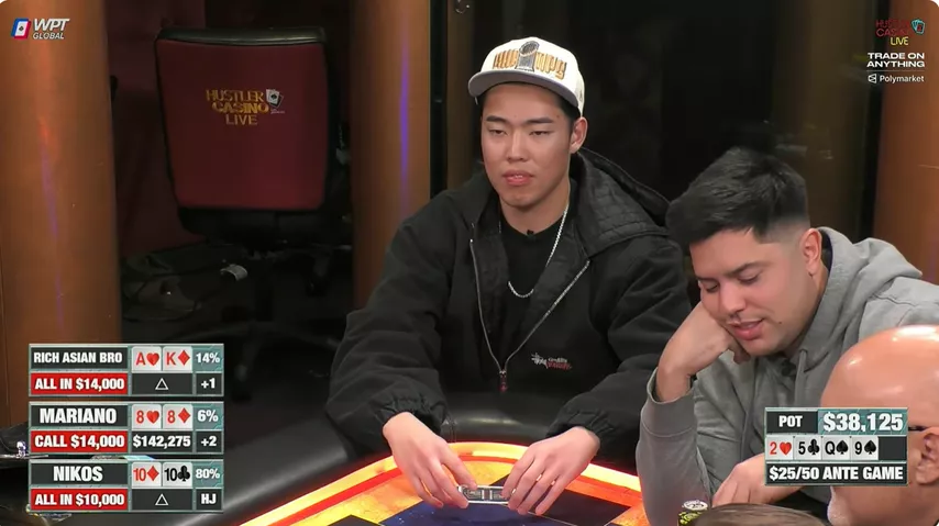 Игрок с тузами и говорящим ником Rich Asian Bro сделал колл и увидел, что аутов у него нет.