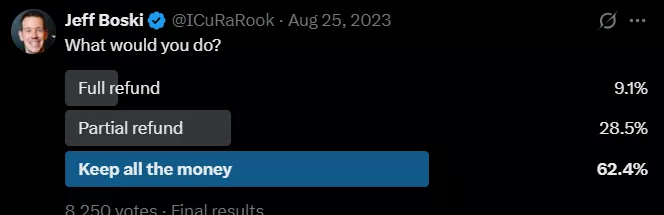 Джеф Боски устроил анонимное голосование, в котором с большим отрывом победил вариант «ничего не возвращать».
