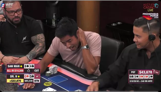– В подобных ситуациях важно задать себе вопрос – а как бы поступил соперник, если бы DR. H блефовал, например, с ? – уточнил Хенрик Хеклен. – Парень с 6-хай радостно забрал бы половину банка? Скорее всего. Но я все равно отдал бы часть (а может и всю) ставки ривера.