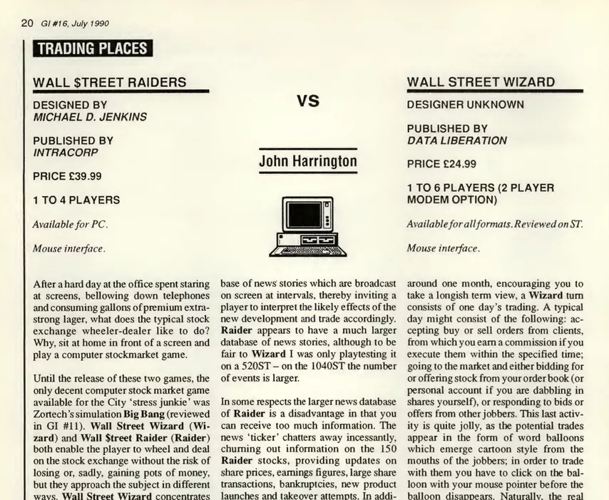 Увы, такая игра невозможна. Когда Дженкинс попробовал заняться прототипом, он быстро осознал, что ни у кого не хватит на неё терпения. Стол, заваленный крошечными сертификатами на акции, обязательный калькулятор для расчётов, многочасовые сессии без какого-либо видимого прогресса... Такой игре требовалось нечто, чего ещё не существовало – персональный компьютер.