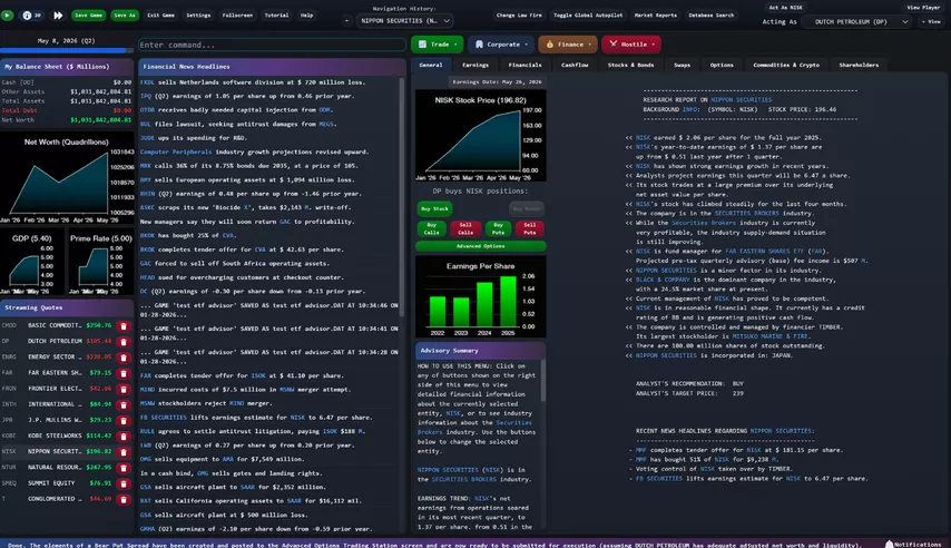 Ремастер – это не просто новый слой краски. Уорд перестроил весь пользовательский опыт вокруг того, как на самом деле работают финансовые профессионалы: поисковая справочная система на основе 271-страничного стратегического руководства Дженкинса, система обучения с постепенным вводом в игру, которая постоянно дорабатывается, контекстные подсказки, проводящие игроков через самые сложные механики, и горячие клавиши для каждой кнопки, вкладки и гиперссылки – как в настоящем терминале Bloomberg – чтобы опытные игроки могли действовать со скоростью мысли.