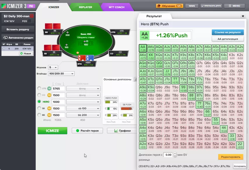 • ICMIZER – покерный калькулятор для поиска правильного пуш-фолда в SNG и MTT.