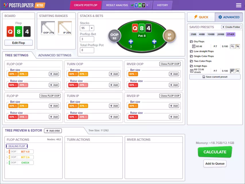 Постфлоп-солвер от создателей ICMIZER понравится и новичкам, и опытным регулярам. Первые оценят режим для начинающих (Quick Mode), где можно легко и быстро настроить размеры стека и рейнджи и протестировать их в различных сценариях, а профессионалы отметят глубину калькулятора, функцию Node Locking (настройка диапазонов оппонентов для тренировки эксплойтных стратегий) и быстрые и точные расчеты, которые проходят на вашем железе.