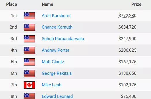 Турнир с бай-ином $5,300 собрал 670 входов. Но миллион победителю так и не выплатили, Ардит Куршуми и Ченс Корнут поделили в хедз-апе.