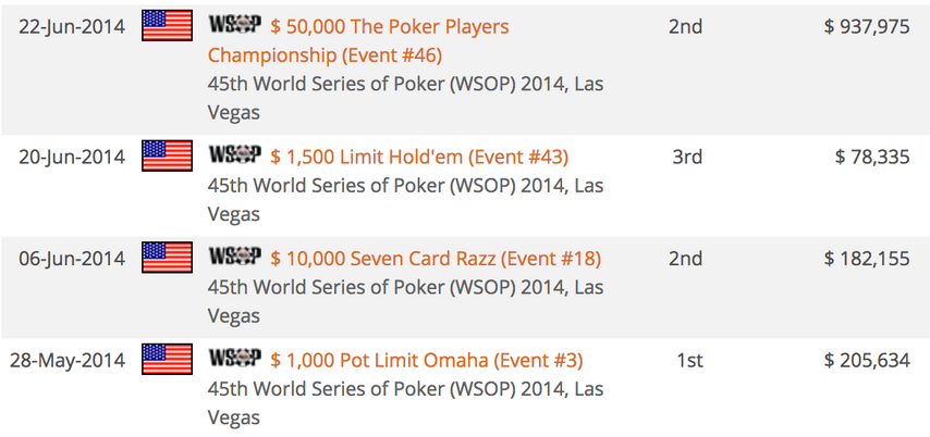 На той серии Брэндон показал феноменальные результаты: браслет выиграл в первом же турнире, еще в трех выходил в топ-3.
