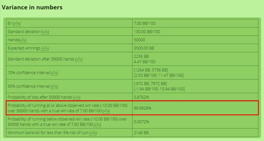 Игроки с винрейтом в 5 ББ на 100 рук в среднем ловили максимальный даунстрик в 7,000 ББ (70 бай-инов).