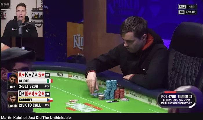 Кароч, ситуация: ФТ, 4 в игре осталось, Мартин вот это вот на скрине открывает, получает 3-бет от итальянца: