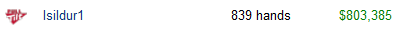 Один из стеков Изильдура превысил $1 млн, при кэпе $80,000 такое происходит не так уж часто.
