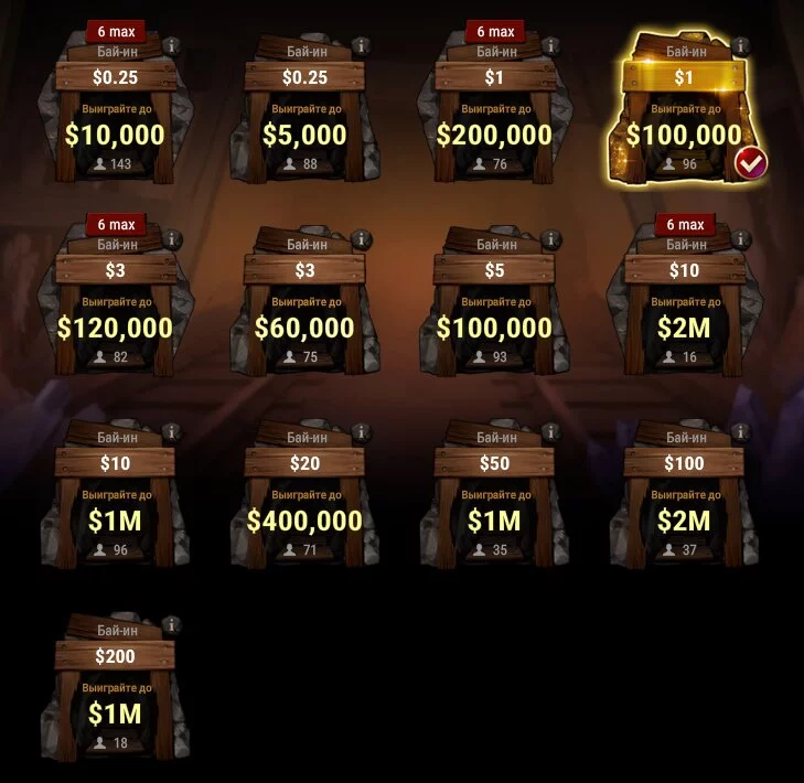 МТТ стартуют от $0.1. В расписании есть большое количество регулярных турниров (Omaholic, Daily, Bounty Hunters), которые проводятся с разными бай-инами в течение всего дня. Найдут чем заняться и хайроллеры: стоимости билетов на отдельные дорогие турниры исчисляются десятками тысяч долларов.